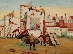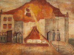 Nastał potop szwedzki. We wrześniu 1655 r. wojska Karola Gustawa podeszły pod Kraków broniony przez Stefana Czarnieckiego, który podjął decyzję, żeby spalić przedmieścia. Należało nie dopuścić, by zabudowania poza murami dały schronienie wrogowi. Wtedy to „do pożarcia od ogniów Piaskowego kościoła z klasztorem sposobność była wszelka, a obrony przeciw temu żadnej”. Ogień trawił kościół nieubłaganie. Tradycja przekazała opowiadanie z tamtych czasów, że podczas pożogi ukazała się Maria Panna i płaszczem swym „pilno zasłaniała” sanktuarium na Piasku.