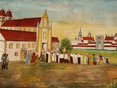 Największe dni trwogi dla klasztoru, w XVIII w. przypadły na czas trwania konfederacji barskiej. Przeorem klasztoru był wtedy O. Marian Poradowski. Zachowała się malownicza relacja z tamtego czasu, pióra brata zakonnego Izydora Mastalskiego, który wspominał, że sprawował „rządy nad kaplicą Błogosławionego Frankusa” i dalej notował „Dopiero było wiedzieć jak Sądny Dzień, kiedy tak wielkie przedmieście ogniem pałały, że miasto jak w ogródku stało, tożsamo i rzecz kościół z klasztorem. Tak wielki ogień był koło klasztoru, że wszystkie okna popryskały i byłby się nie utrzymał, gdyby nie ludzie, którzy się na ten czas byli zgromadzili ze wszystkich przedmieściów /…/. Widzieć było jako mężczyzna po dachach siedziała, broniąc kościoła z klasztorem, a niewiasty wody dodawały. Nie było natenczas klauzury w tak strasznym przypadku, ponieważ się lud wielki zgromadził, tak, że nie było takiego kąta, gdzieby ludzi nie było : po celach, po kościele, w zakrystyi, w brackiej kaplicy, w browarze, po spichlerzach, w ogrodzie, ganki w koło. Samych niewiast, dzieci, kolebek, pościeli, skrzynek, tak gęsto, że tylko, że tylko uliczka mała miedzy ludźmi była, że ledwie jeden człek mógł przejść środkiem i że się sami Moskale dziwowali, co to za księża, że tyle ludzi mają, a to było przed dobyciem miasta, bo się tu Moskale wkradli tyłami w nocy i tu armaty na cmentarz sprowadzili”. Ów reportaż z epoki znaleziono za jednym z obrazów.